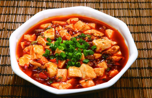 麻婆豆腐是四川省汉族传统名菜之一,属于川菜系。主要原料为配料和豆腐,材料主要有豆腐、牛肉末(也可以用猪肉)、辣椒和花椒等。麻来自花椒,辣来自辣椒,这道菜突出了川菜"麻辣"的特点。