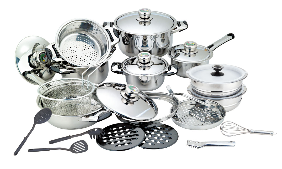 创宇宽边锅27件套 蝴蝶耳温度计顶珠