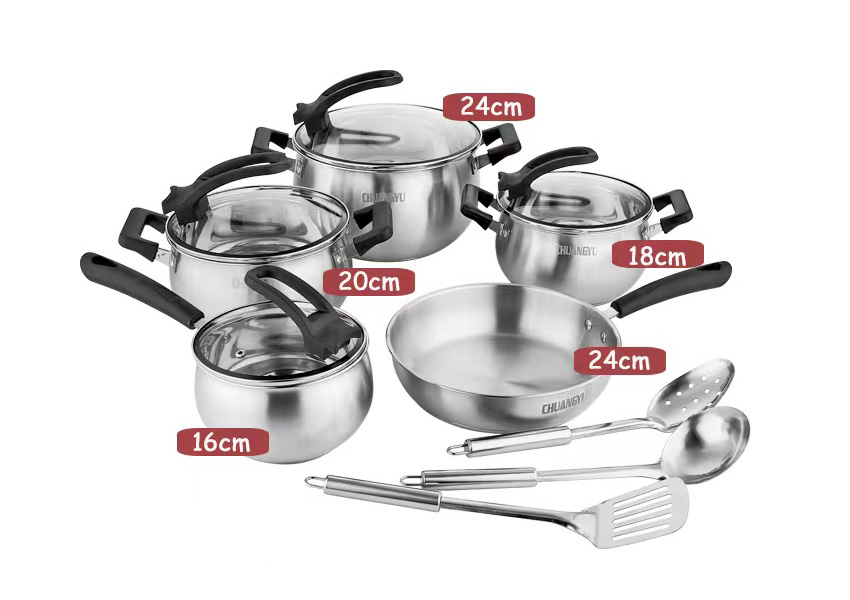 创宇弧形锅12件套 钢柄